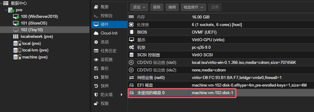 我的虚拟机id为”102”,lvm存储名称为”machine”