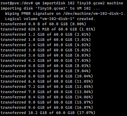 qm importdisk 102 Tiny10.qcow2 machine